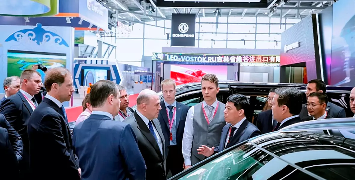 В рамках выставки проходит 7-я Китайско-российская выставка ЭКСПО, на которой организован объединенный стенд Dongfeng Motor. На экспозиции представлены легковые автомобили бренда Dongfeng, включая пикап DF6 и седан Shine Max из линейки Aeolus, а также гамма моделей марки Voyah.